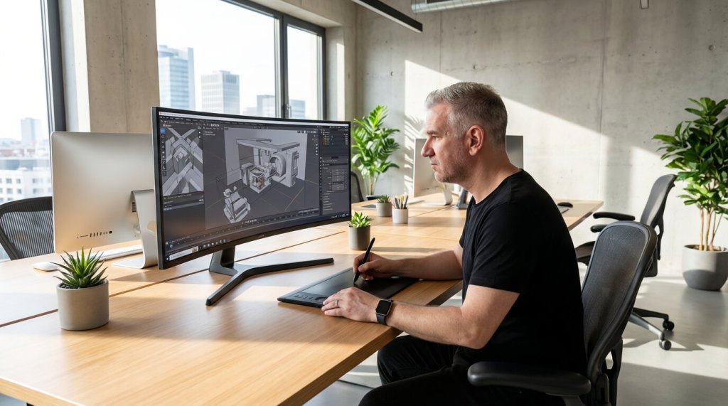 Jetzt ist es eher so ein stilles Werkzeug. Licht, Schatten, Tiefe – aber im Dienst der Sache, nicht als Selbstzweck. Man merkt nicht mehr so sehr: Oh, das ist 3D. Sondern es fügt sich ein.