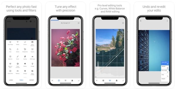 Snapseed ist ein Favorit unter Fotografen. Es unterstützt RAW- und JPG-Dateien und bietet Profi-Funktionen wie Weißabgleich und selektive Anpassungen. Speichere deine Lieblings-Filter und wende sie mit einem Klick auf neue Bilder an.
