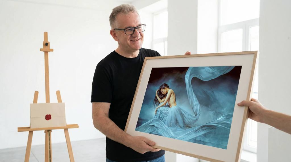 Mein erstes Werk als Unique Fine Art Print wurde verkauft. Keine 24 Stunden nach dem Launch. Ich saß am Rechner, die Benachrichtigung kam rein, und ich hab erstmal gar nichts gemacht. Nur geguckt. Dann nochmal geguckt. Dann Kaffee geholt.