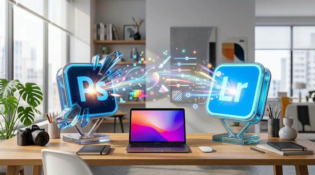 Stell dir vor, du öffnest morgens deinen Rechner, klickst auf das vertraute blaue Icon – und plötzlich räuspert sich Photoshop. Ja, richtig gelesen. Die Software spricht. Und Lightroom? Das sitzt daneben und verdreht die Augen. Willkommen zu einem Gespräch, das so nie stattgefunden hat – aber vielleicht genau so ablaufen würde.