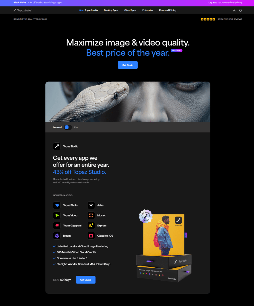 Wenn Topaz Labs einen Sale ausrollt, dann nie schüchtern – und dieser Black-Friday-Deal ist im Kern ein Statement: „Wir bauen das ultimative Finishing-Labor für AI, Foto und Video – und du bekommst es jetzt billiger.“