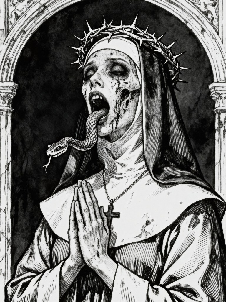KI kann beeindruckende Bilder generieren, ja. Sie kann Horror, Makaber, Gothic, Surrealismus in Millionen Variationen ausspucken. Sie kann Schlangen, Totenschädel, verwelkte Engel und verzerrte Anatomien erzeugen. Aber was sie nicht kann: Dark Art verstehen. Nicht die Essenz. Nicht die Tiefe. Nicht das Gefühl, das den Künstler bis vier Uhr morgens wachhält, weil eine Vision halb fertig und halb Wahnsinn ist.