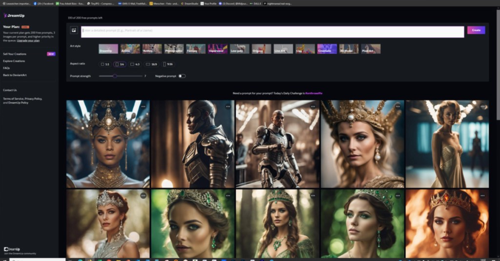 Direkt in DeviantArt verwendbar, keine Zusatzkosten zu deiner bestehenden DeviantArt Membership. Einfachste Bedienung, schau einfach mal direkt rein: https://www.deviantart.com/dreamup