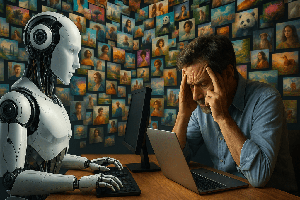 Es begann leise. Erst waren es nur ein paar synthetische Gesichter, die in den Suchergebnissen auftauchten. Dann ein paar Fantasielandschaften, zu perfekt, um echt zu sein. Heute ist der Sturm voll entfacht: Der Bildermarkt im Netz wird von KI-Fluten überschwemmt. Millionen von Motiven, die alle gleichzeitig nach Aufmerksamkeit schreien, aber kaum noch etwas zu sagen haben.